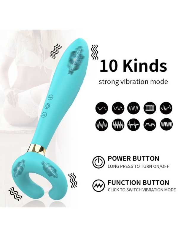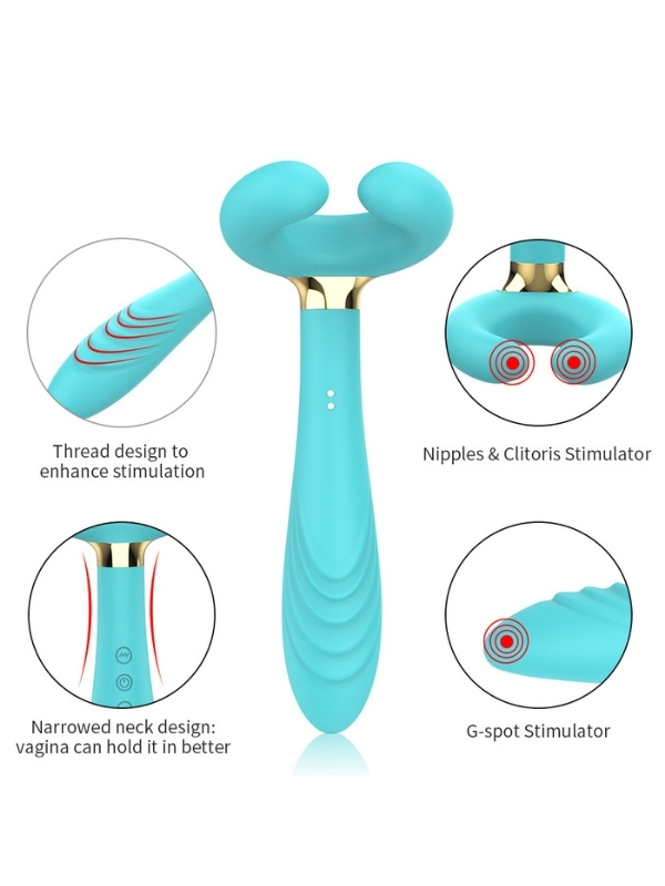 Censan Çiftler için Klitoris Vibratörü – 3 Motorlu Çok Fonksiyonlu Konsolador ve Penis Masajörü (Mavi)