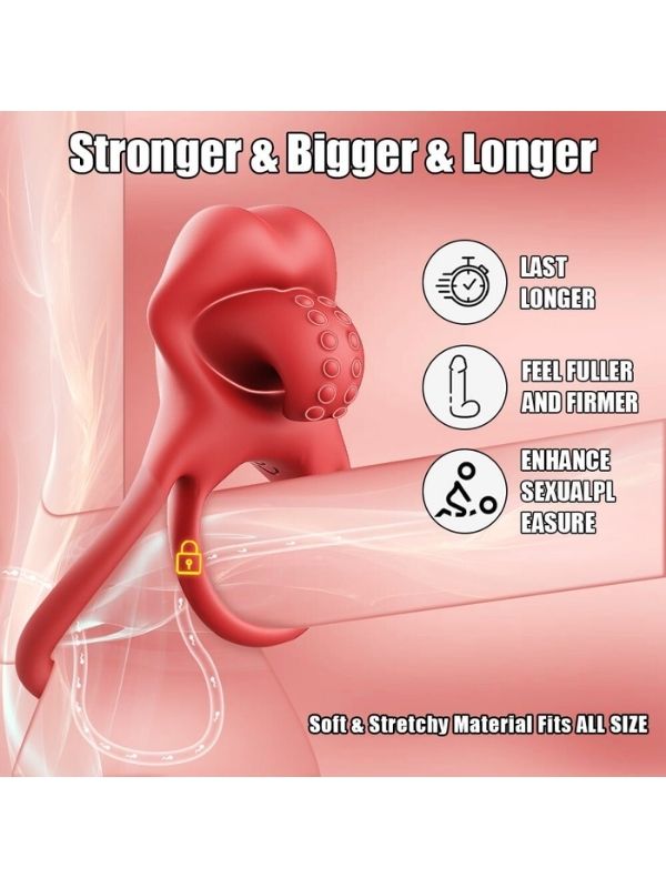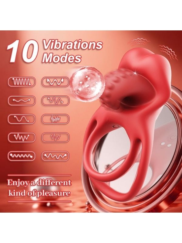 Censan G-Noktası Uyarımlı Dilli Titreşimli Penis Halkası – Çift Yönlü Zevk